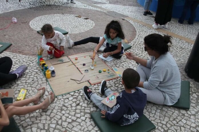 Além das atividades artísticas, quem passava pelo espaço também podia se juntar a brincadeiras já conhecidas de outras gerações, como ‘pé de lata’, feita com barbantes e latas reutilizadas para estimular o equilíbrio, e bilboquê, que auxilia na coordenação motora, produzido com garrafas pet. O objetivo é, além de atrair familiares, incentivar o reaproveitamento ao mostrar que a diversão pode ser garantida com materiais facilmente encontrados em casa.