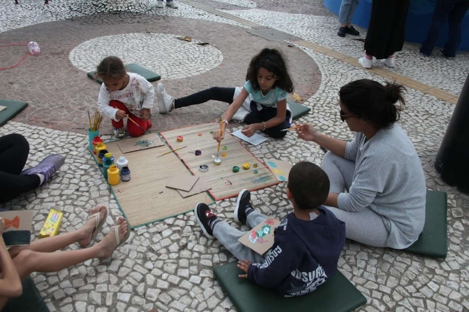 Aproveitando a luz de um sol tímido de tarde, a equipe de Educação Ambiental preparou um espaço ideal para a criatividade rolar solta, com tintas e telas feitas de papelão à disposição da criançada. Durante a ação, os pequenos pintaram o animal marinho favorito enquanto aprendiam curiosidades sobre eles. Pequenos recipientes com tinta própria para a pele também estavam sob o cuidado de Ingrid da Costa e Andressa Souza, educadoras do Aquário, para desenhar nas pequenas mãos dos participantes da atividade.